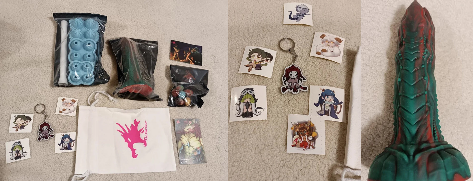 Nothosaur ovipositor dildo is made out of 100% platinum-cure silicone to allow them to flex and stretch. Nothosaur Silicone Eggs are suitable for vaginal use. If you would like to try your ovipositor for anal play, we highly recommend making gelatin eggs because they will dissolve with body heat.