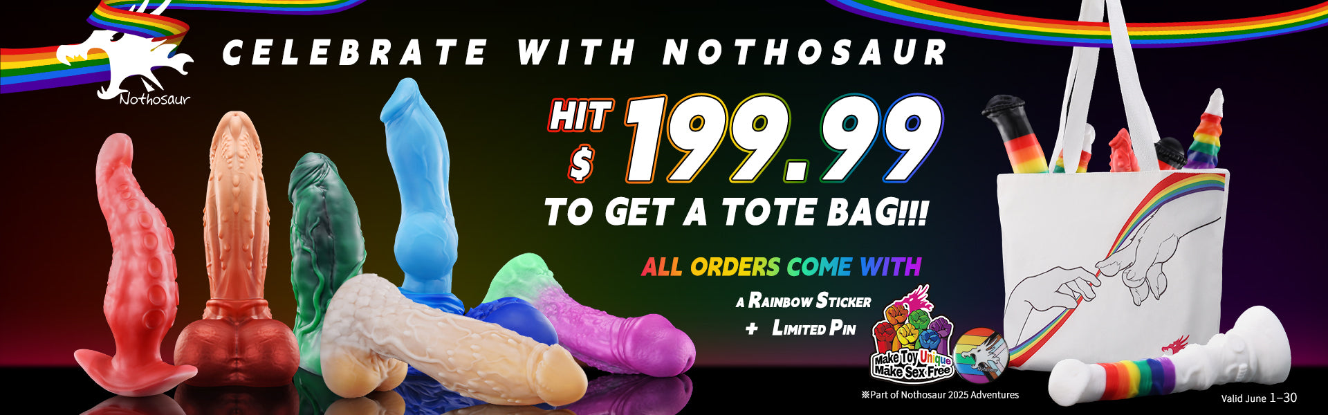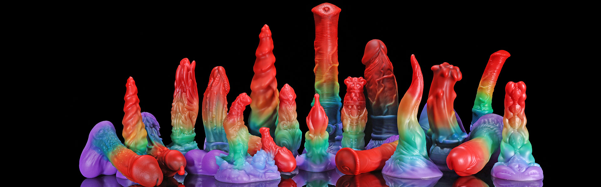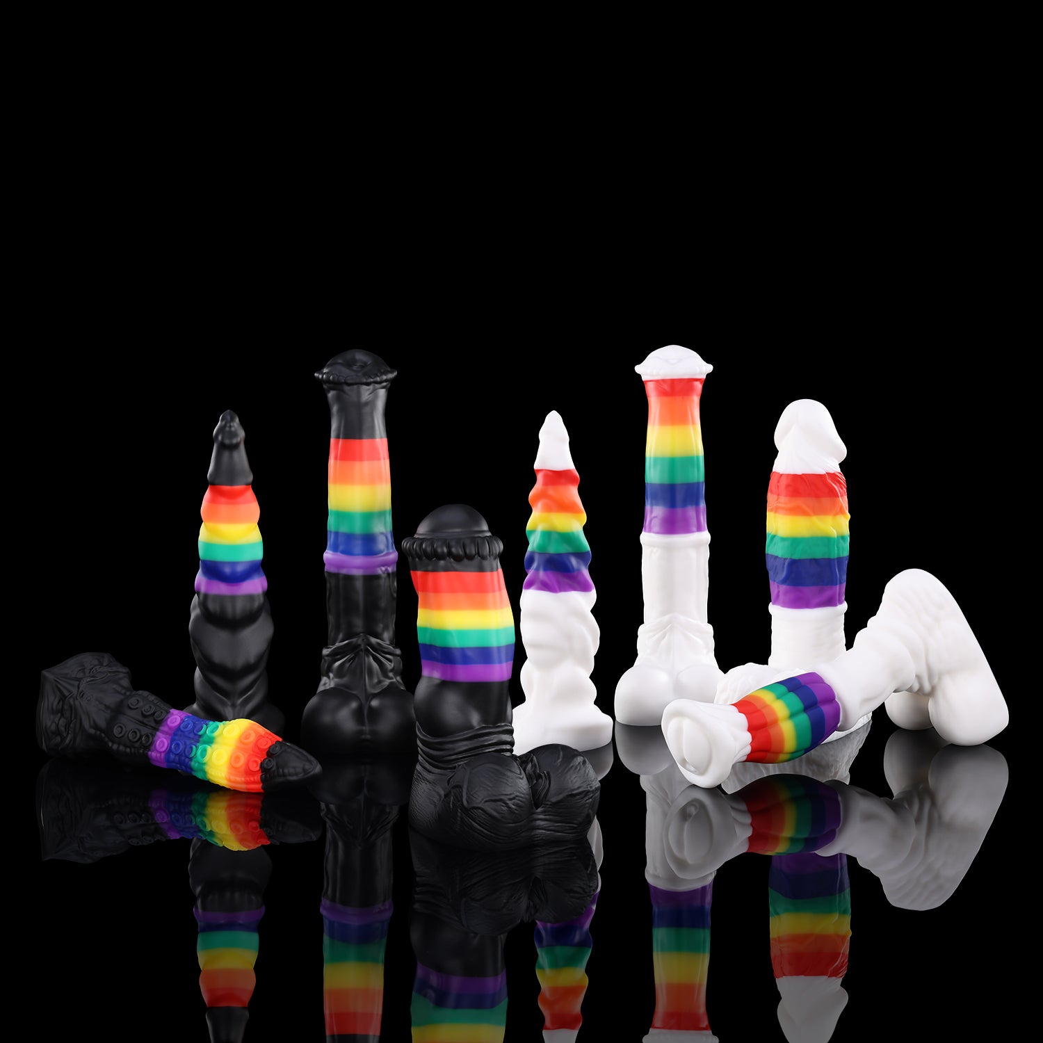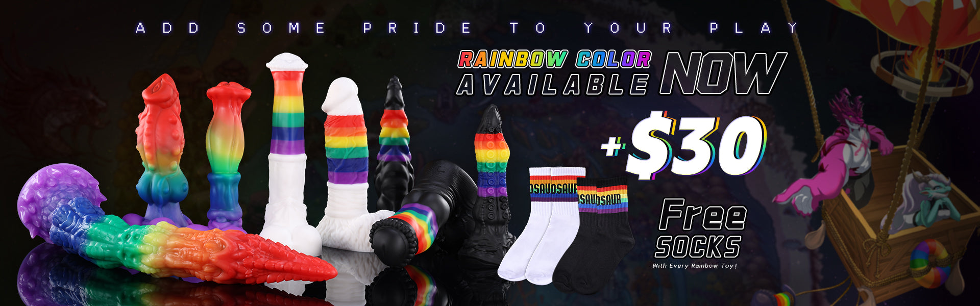 Nothosaur brings Rainbow color to its dildo. Rainbow dildo has stripes, gradients, or other rainbow effects. You can also customize it with many flag colors.