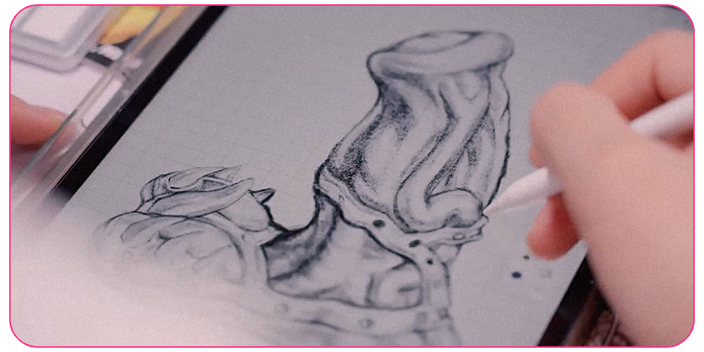 The sketch was used to digitally sculpt the toy using 3D modeling software to carve out the details of the toy and bring the piece into sharper focus!