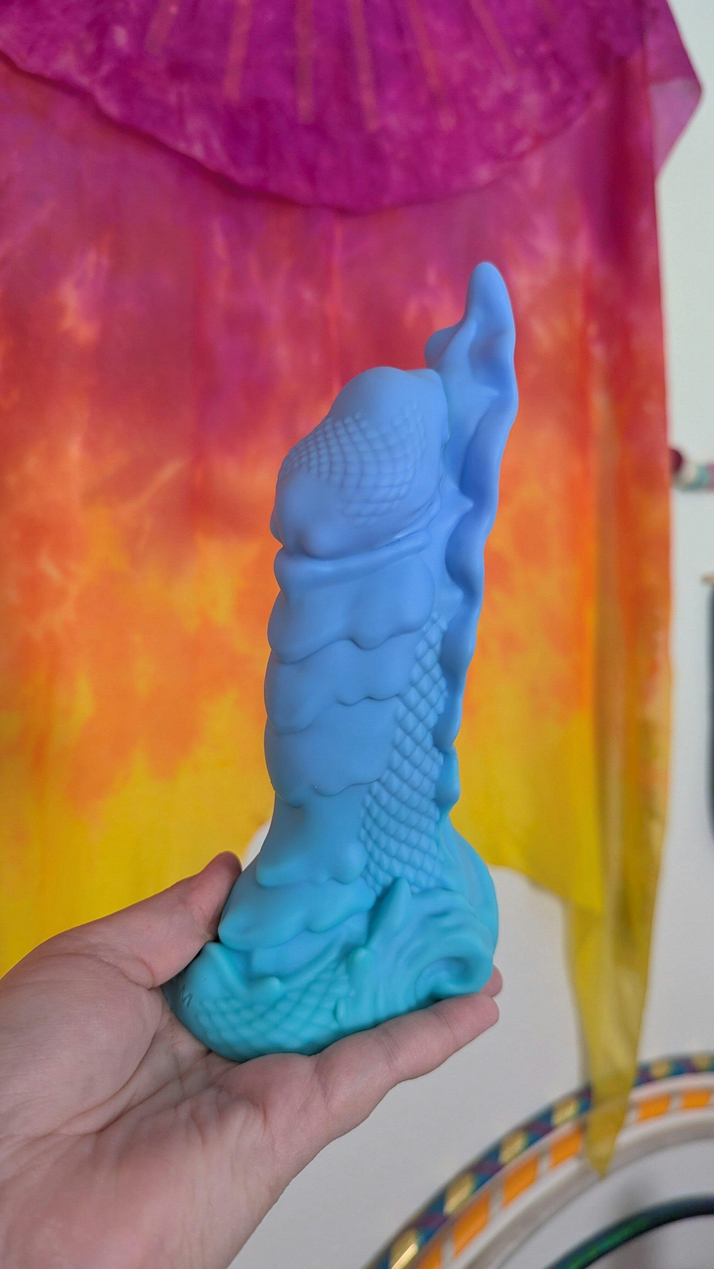Inspired by Aphrodite, the goddess of sexuality, we combined Greek stories and designed this constellation toy! With the same oceanic design elements as the Aquarius, but with the added texture of fish scales and seaweed floating in the shape of the glans, the seaweed attached at the glans to tease your clitoris before entering the pussy, and the curved shape to provide even more layers of richness, this is a creative and fantasy thick dildo, enjoy it! Be a part of Pisces!