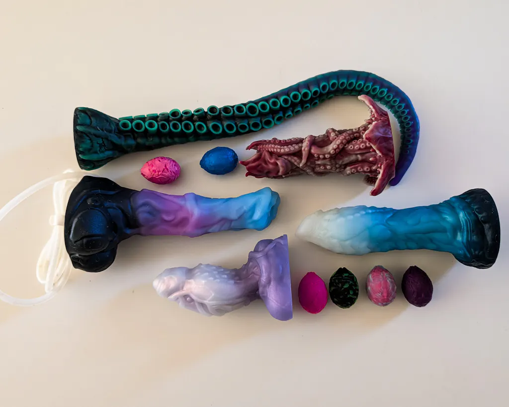 Fantasy toys come with unique shapes and textures, so it's crucial to choose a dildo that meets your specific needs or desires. We design our toys thematically, such as tentacles and aliens, catering to diverse kinks and fetishes. Explore to your heart's content at Nothosaur!